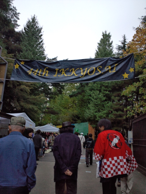 ようやく大学に到着。赤いハッピ姿が実行委員会の生徒さん。hitotsubashisai ではなく、ikkyosaiなんですね。