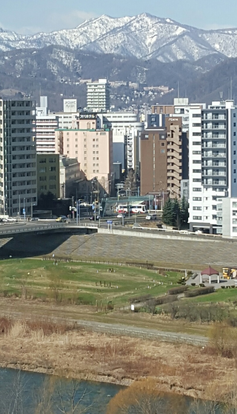 手前は豊平川ですが、いつもは川岸へ散歩に出るKAKOさんも、相当な寒さを覚悟して散歩用シューズを持ってこなかったのを後悔している様子でした。