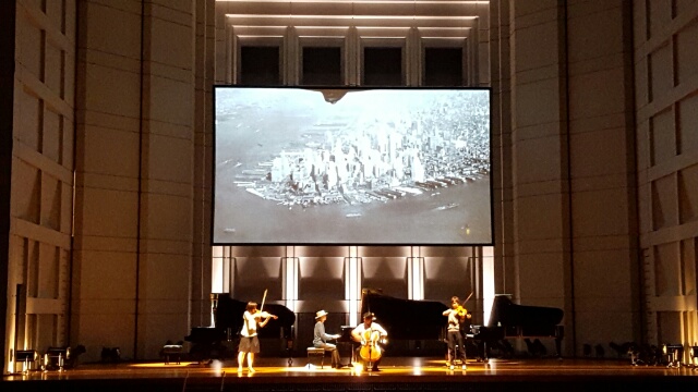 初めて尽くしのもうひとつは、KAKOさんのコーナーがピアノソロとクァルテットの2本立て、だということ。これは東京と大阪公演だけだそうです。それで、今日のリハーサル風景にスクリーンもクァルテットも入ります。