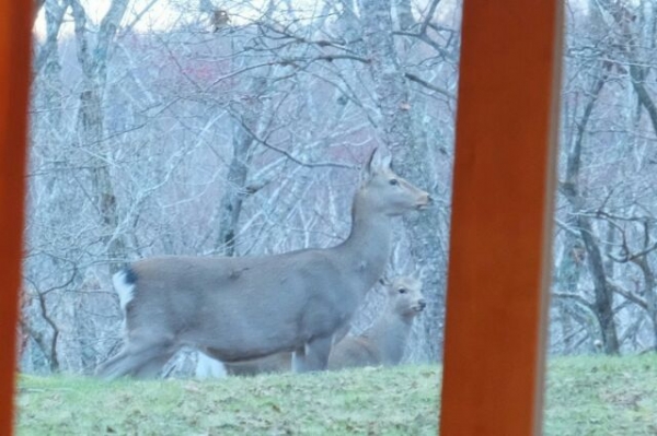 本番は撮影出来ませんが、まさに本番直前に会場の窓外に鹿が通るのが見えたそうで、お客様から写真をいただきました。音楽堂へ挨拶に来た鹿の親子だったかも知れませんね。八ヶ岳には鹿の生息も多く、散歩の途中でも見かけることがあります。