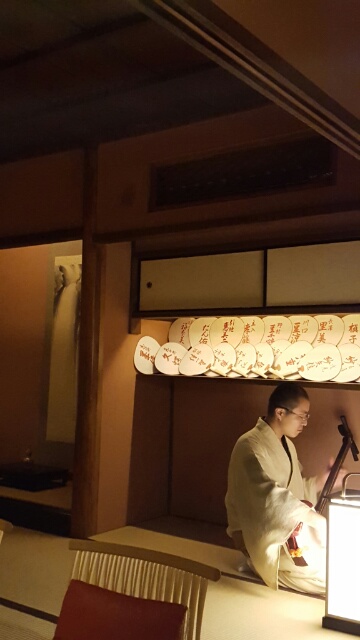 前日は、「映像の世紀コンサート」の打ち合わせが思ったよりもスムースにいき、思いがけず東京から京都に向かう新幹線を早めることが出来たので、それでも20時は過ぎましたがプロデューサー氏と一緒に、京都ならではの情緒あるお店に行きました。その際の一コマ。
