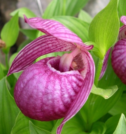 平敦盛(たいら の あつもり)は赤紫色のアツモリソウ。