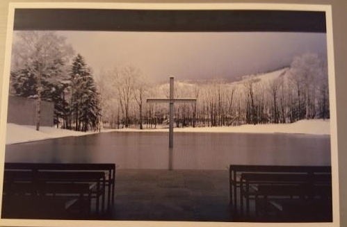 ところで、北海道の「水の教会」の雪景色が絵葉書で売っていたのですが、曲想を得るために訪れた時期に似ているというので、KAKOさんが購入したものです。
