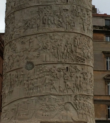 高さが40m近くあるそうですが、逆光で撮影しにくい上に、全体を撮っても円柱の浮き彫りは見えないと思い、敢えて部分的に撮影しています。紀元後101年頃からの「ダキア戦役」の顛末が叙事詩的に彫られたもの。