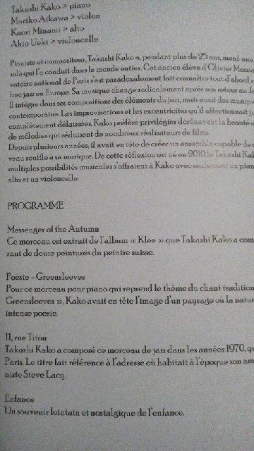 クァルテットの4人が写ったパリのチラシの裏面です。